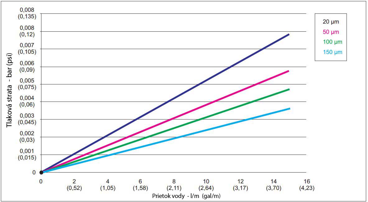 Označenie | Mikróny (µm) | Rozmery (cm) | Prietok (l/min) | Pracovná teplota (°C) | Životnosť do prvého premytia (mesiace) | Životnosť do prvého premytia |