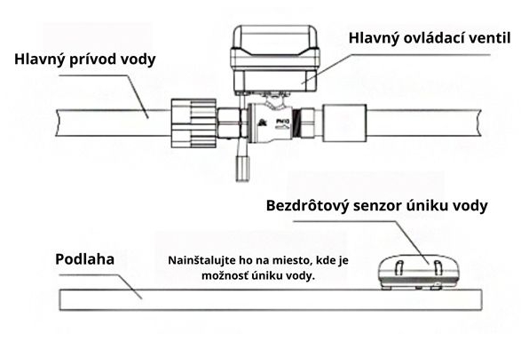 Bezdrôtový detektor úniku vody sa spolieha na vodivosť elektródy, aby zistila, či nedochádza k úniku vody. Pri inštalácii ho umiestnite na nízko položené miesto, kde sa môže pri úniku vody hromadit voda.